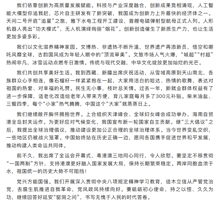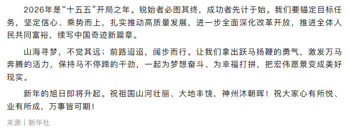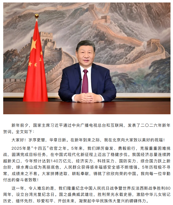 国家主席习近平发表二〇二六年新年贺词