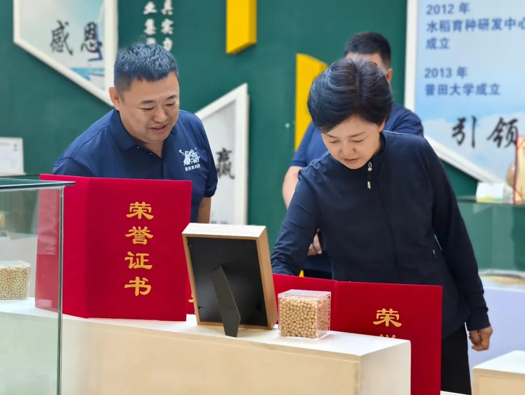 陈宇辉书记一行参观了普田种业集团农展馆,听取集团发展历程介绍,对集团常规水稻、大豆、玉米重 点品种的特征特性及研发、推广、销售等方面情况作了充 分了解。
