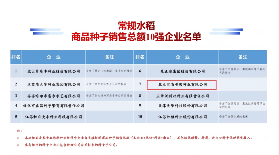 9月27日,第十七届中国国 际种业博览会暨第二十二届全 国种子信息交流与产品交易会发布权威数据:黑龙江省普田种业有限公司2024年度大豆商品种子销售总额跻身第三,常规水稻商品种子销售总额位列第七。这一排名展现了公司沃豆®、北粳®系列品种为粮食增产、农民增收所提供坚实的品种支撑。普田种业将持续强化科技创新核心引擎作用,为绘就中国种业繁荣兴盛、支撑农业强国建设的壮丽蓝图贡献普田智慧和力量!