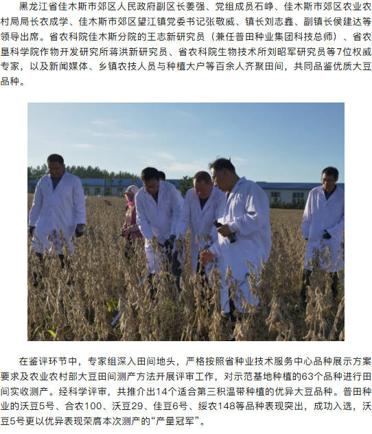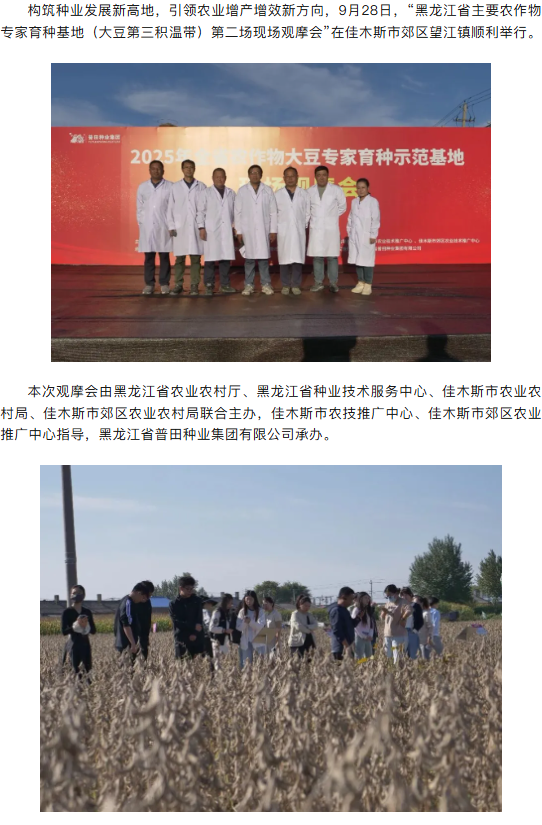 黑龙江省主要农作物大豆专家育种基地(大豆第三积温带)第二场现场观摩会在佳木斯成功举办