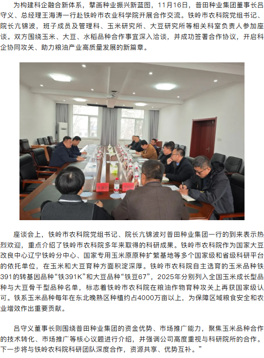 携手铁岭市农科院,普田种业集团开启科企合作新篇章