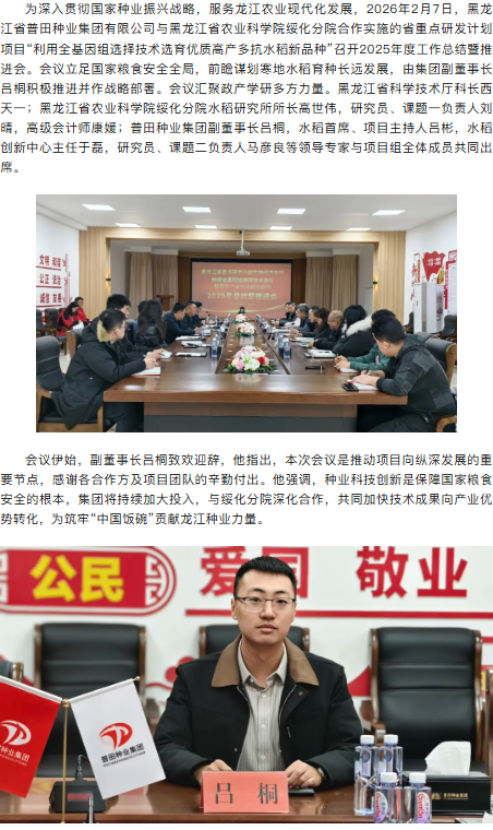 立足国家种业振兴 擘画寒地稻作未来|普田种业集团召开省重点研发计划项目2025年度总结会