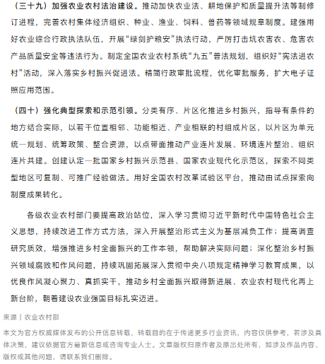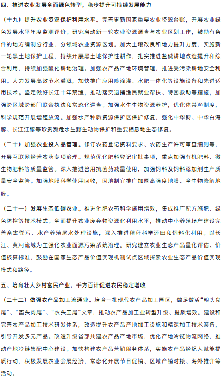 农业农村部关于落实《中共中央国务院关于锚定农业农村现代化扎实推进乡村全面振兴的意见》的实施意见