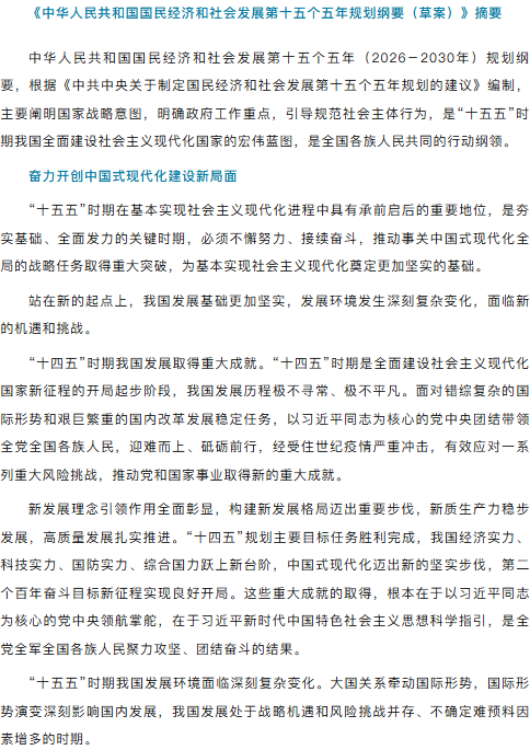 “十五五”规划纲要草案,摘要来了!