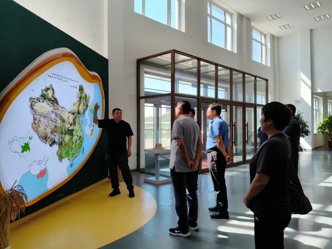 亢锦波书记一行首先参观了普田种业集团农展馆,认真听取了集团发展历程的介绍,重 点了解了常规水稻、大豆、玉米等主要品种的特征特性,以及相关品种的研发创新、市场推广与销售情况。