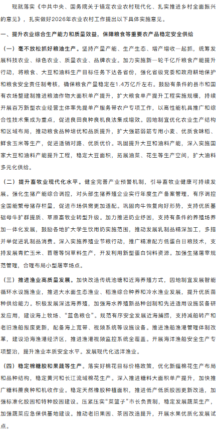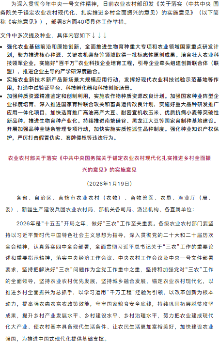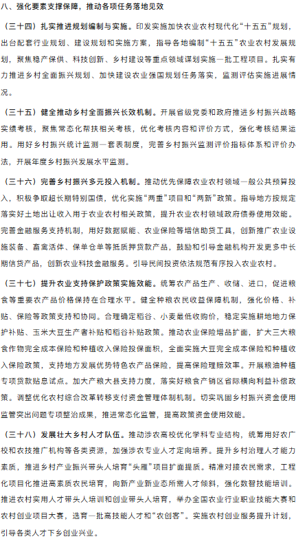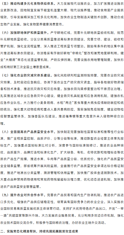 农业农村部关于落实《中共中央国务院关于锚定农业农村现代化扎实推进乡村全面振兴的意见》的实施意见